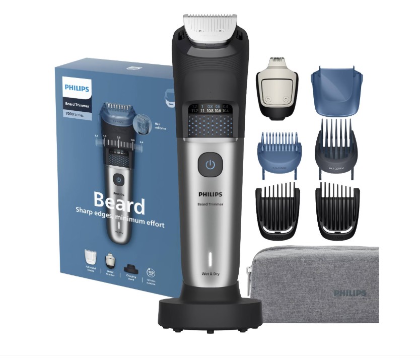 Aparat de tuns electric Philips BT7670/15 Seria 7000, 40 setari lungime, tehnologie BeardSense, 100% rezistent la apa, husa transport, Gri.