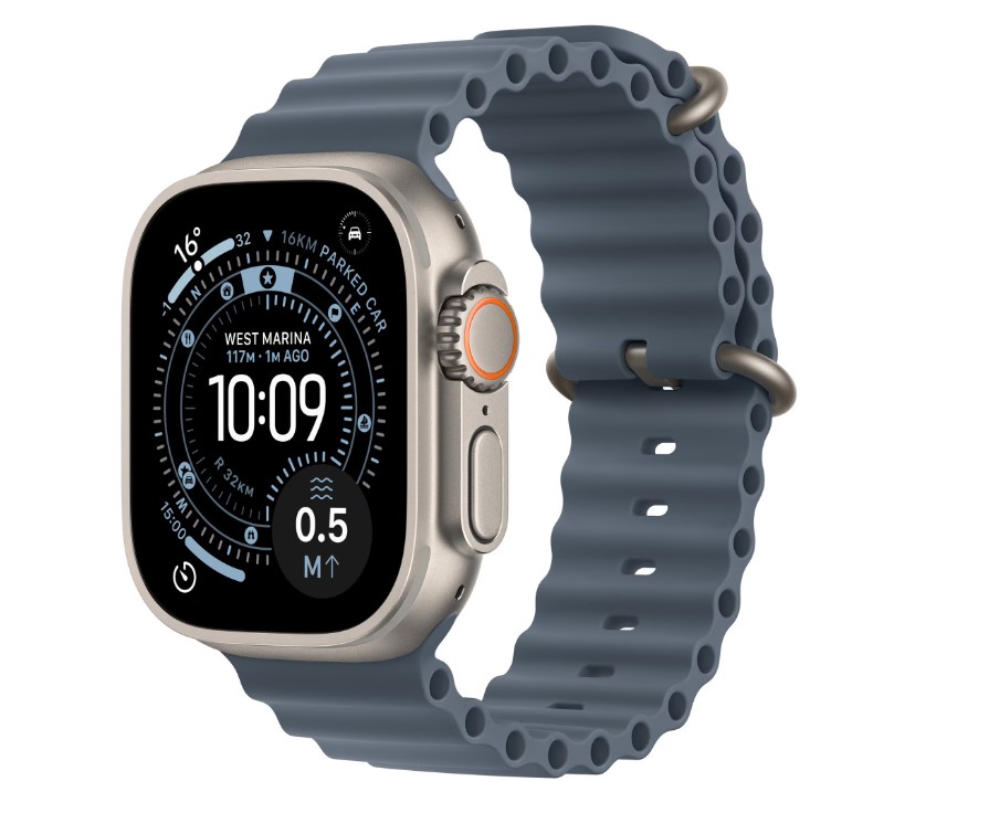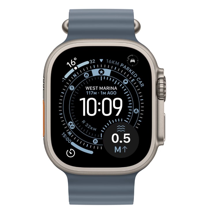Apple Watch Ultra 3 GPS + Cellular 49mm Natural Titanium Case with Anchor Blue Ocean Band.
