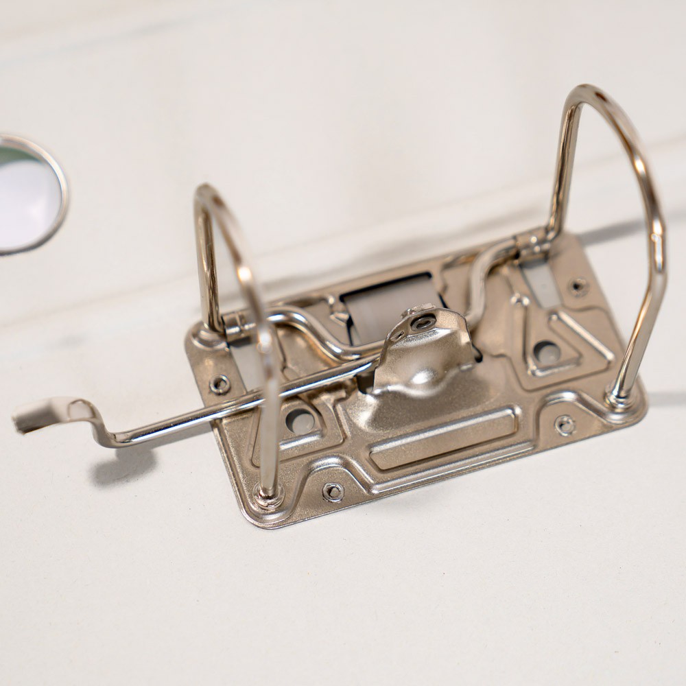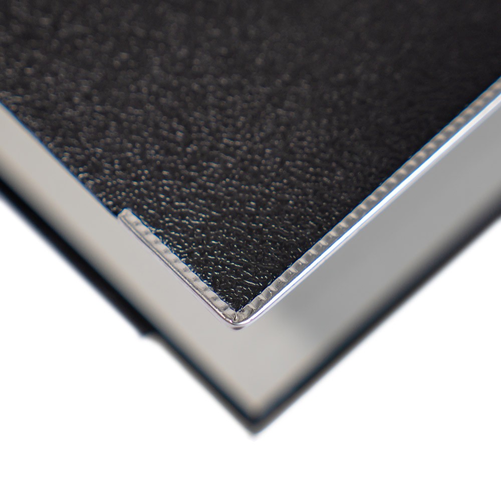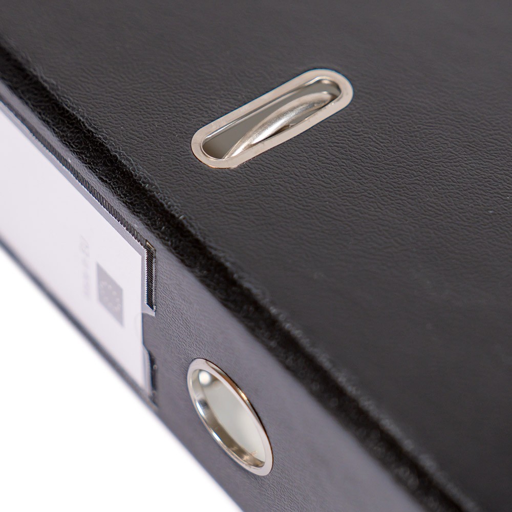 Copertă îmbrăcată în PVC lavabil (interior + exterior) Margini inferioare ranforsate cu șină metalică Portetichetă transparentă pe cotor, dotată cu