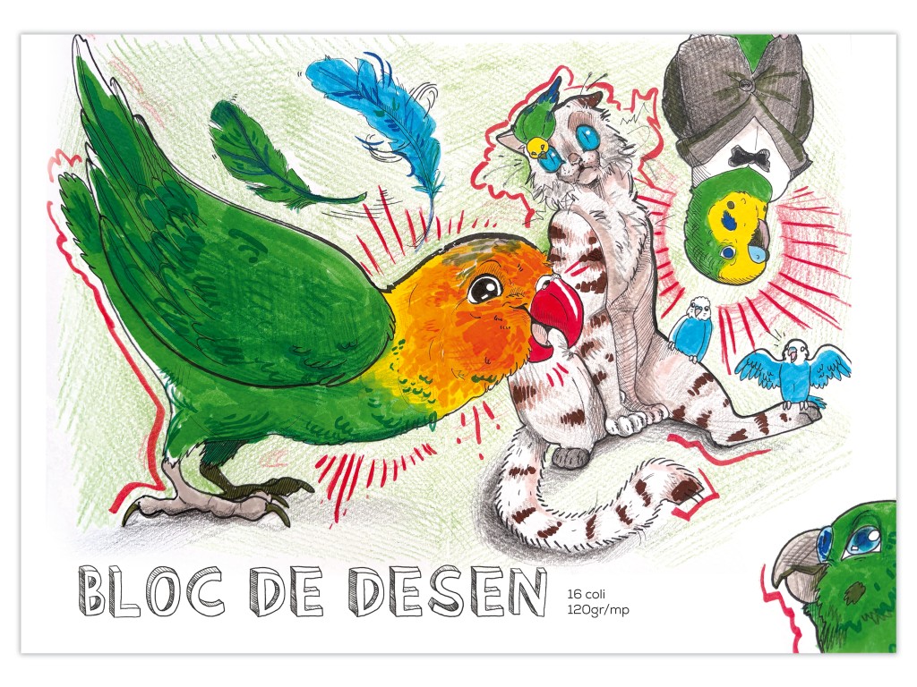 – Bloc de desen A4, 16 file, 120g, Niște amici simpatici, bloc de desen landscape
