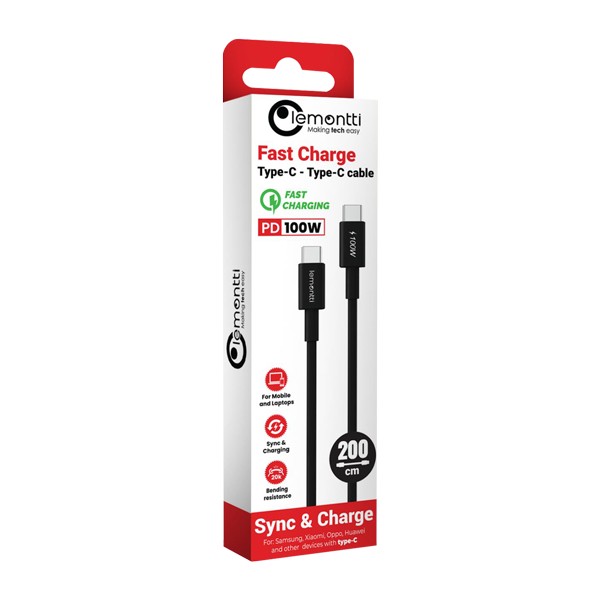 Cablu Lemontti Fast Charge Type-C la Type-C, PD, 100W, lungime 2m – LEMCFCTC100N