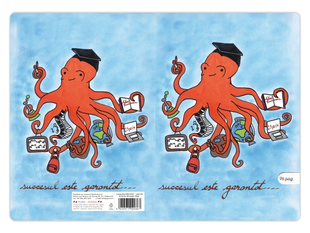 – Caiet A5 , 48 file, 80g, Caracatița MIRCMAG, capsat, 48 file, dictando
