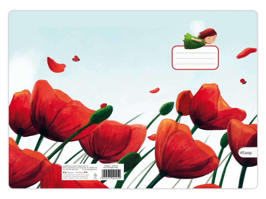 – Caiet A5, 24 file, 90g, Poppies, capsat, 24 file, Tip 2