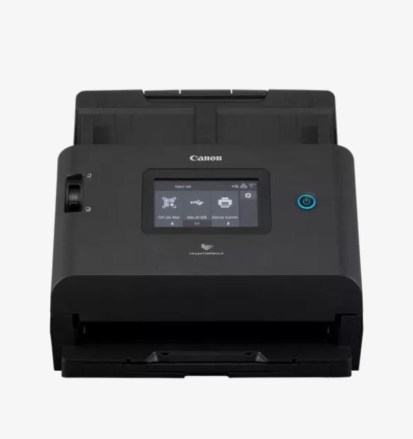 CANON DR-S350NW A4 SCANNER, Dimensiune A4, Senzor CIS, Rezolutie: 600dpi, Duplex, Touchscreen 10.9cm, Interfata: USB, Retea, WI-FI, Dimensiuni: 291 x 267 x 242 mm, 3.4kg, viteza: 50 ppm/100 ipm (200 dpi/300 dpi), Volum zilnic recomadat: 6000-9000 pagini, Capacitate alimentator: 60 coli A4, Functii speciale: Scanarea în browserul web cu orice dispozitiv din aceeaşi reţea prin CaptureOnTouch Lite Web încorporat (acceptă conectarea prin cod QR, recunoaşterea OCR, detectarea cu ultrasunete a alimentării duble, modul Paşaport, omiterea paginilor goale, detectarea automată a formatului paginii, protecţia cu parolă).