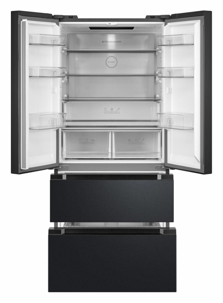 Combina frigorifica French Door Heinner HCFD-M516INVHDXE++, No Frost, compresor Inverter, clasa energetica: E, capacitate totala: 516 L, capacitate frigider: 347 L, capacitate congelator: 169 L, display LED cu control touch, tehnologie InoxCool, functie Super racire, functie Super congelare, tehnologie ADT Fresh, alarma usa deschisa, Vario Temp. – compartiment cu temperatura variabila, 2 rafturi din sticla frigider, compartiment pentru fructe si legume, 2 sertare congelator, lumina LED, capacitate de congelare: 12kg/24h, dimensiuni (LxAxI): 83.3 x 65.3 x 189.8 cm, culoare: Inox Antracit.