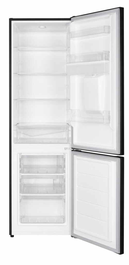 Combina frigorifica Heinner HC-HM260BKWDF+, clasa energetica: F, capacitate totala: 260L, capacitate frigider: 189L, capacitate congelator: 71L, control electronic cu termostat ajustabil, dozator de apa, lumina LED, 3 rafturi sticla frigider, compartiment pentru fructe si legume, 3 sertare congelator, usi reversibile, suport oua, tavita cuburi de gheata, capacitate congelare: 3.2kg/24h, dimensiuni (WxDxH): 55 x 56 x 180 cm, culoare: Negru.