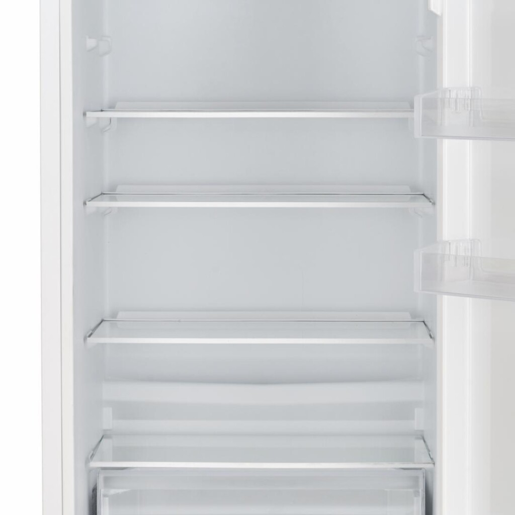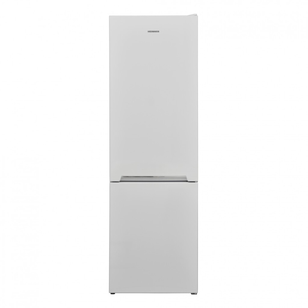 Combina frigorifica Heinner HC-V268E++, Clasa energetica: E, Sistem de racire Less Frost, Capacitate totala: 268L, Capacitate frigider: 184L, Capacitate congelator: 84L, Control mecanic cu termostat ajustabil, Lumina LED, Functie „Super congelare”, 3 rafturi sticla frigider, 3 sertare congelator, Compartiment pentru fructe si legume, Usi reversibile, Suport oua, Tavita cuburi de gheata, Capacitate congelare: 3.9kg/24h, Dimensiuni (WxDxH): 54 x 59.5 x 170 cm, Alb cu decoratiune cromata pe maner.