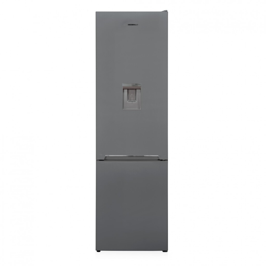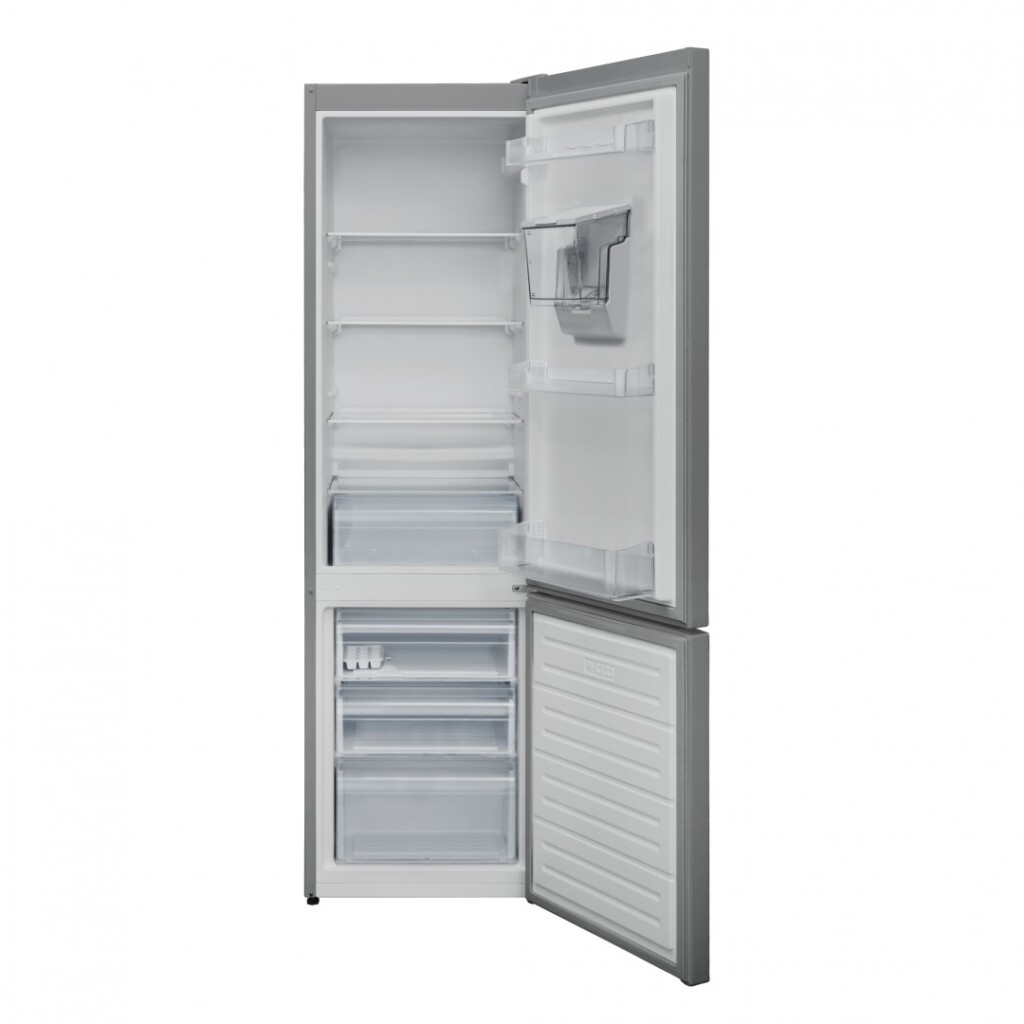 Combina frigorifica Heinner HC-V286SWDF+, Clasa energetica: F, Sistem racire Less Frost, Dozator de apa, Capacitate totala: 288L, Capacitate frigider: 204L, Capacitate congelator: 84L, Control mecanic cu termostat ajustabil, Lumina LED, Functie „Super congelare”, 3 rafturi sticla frigider, Compartiment pentru fructe si legume, 3 sertare congelator, Usi reversibile, Suport oua, Tavita cuburi de gheata, Capacitate congelare: 3.9kg/24h, Dimensiuni (WxDxH): 54 x 59.5 x 180 cm, Culoare: Argintiu cu decoratiune cromata pe maner.