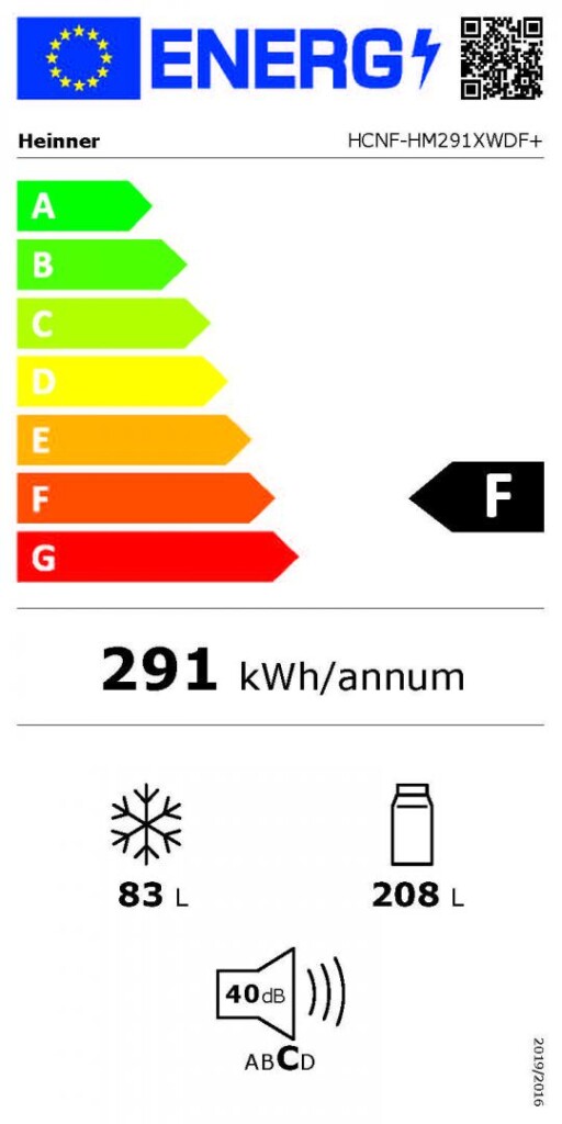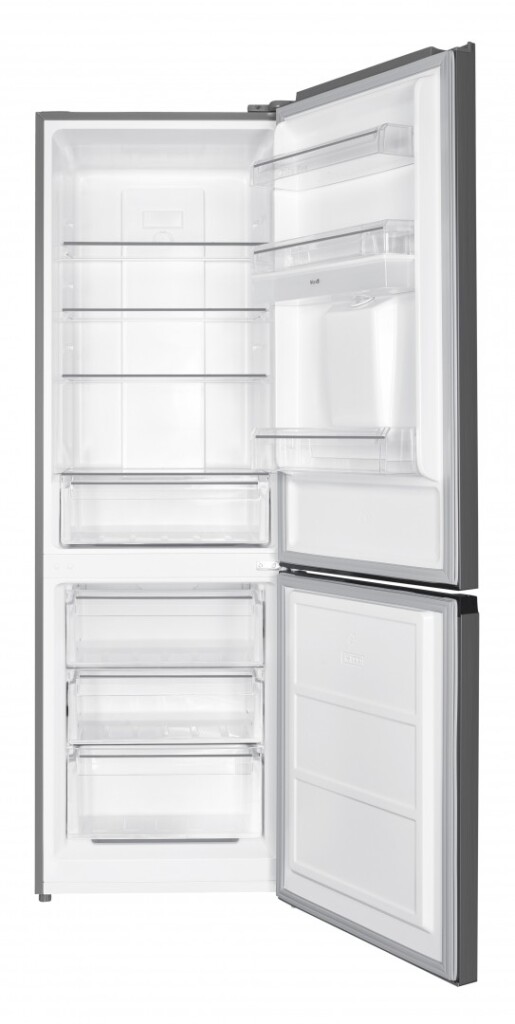 Combina frigorifica Heinner HCNF-HM291XWDF+, No Frost, clasa energetica F, capacitate totala: 291L, capacitate frigider: 208L, capacitate congelator: 83L, control electronic cu termostat ajustabil, dozator de apa, lumina LED, 3 rafturi din sticla frigider, compartiment pentru fructe si legume, 3 sertare congelator, suport oua, tavita cuburi gheata, capacitate de congelare: 3.8kg/24h, dimensiuni (WxDxH): 60 x 60 x 186 cm, culoare: Apect inox cu maner negru.