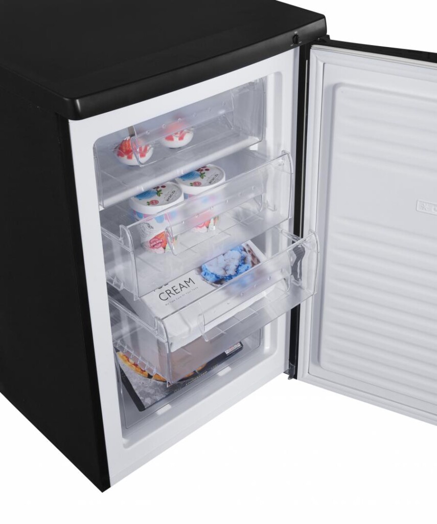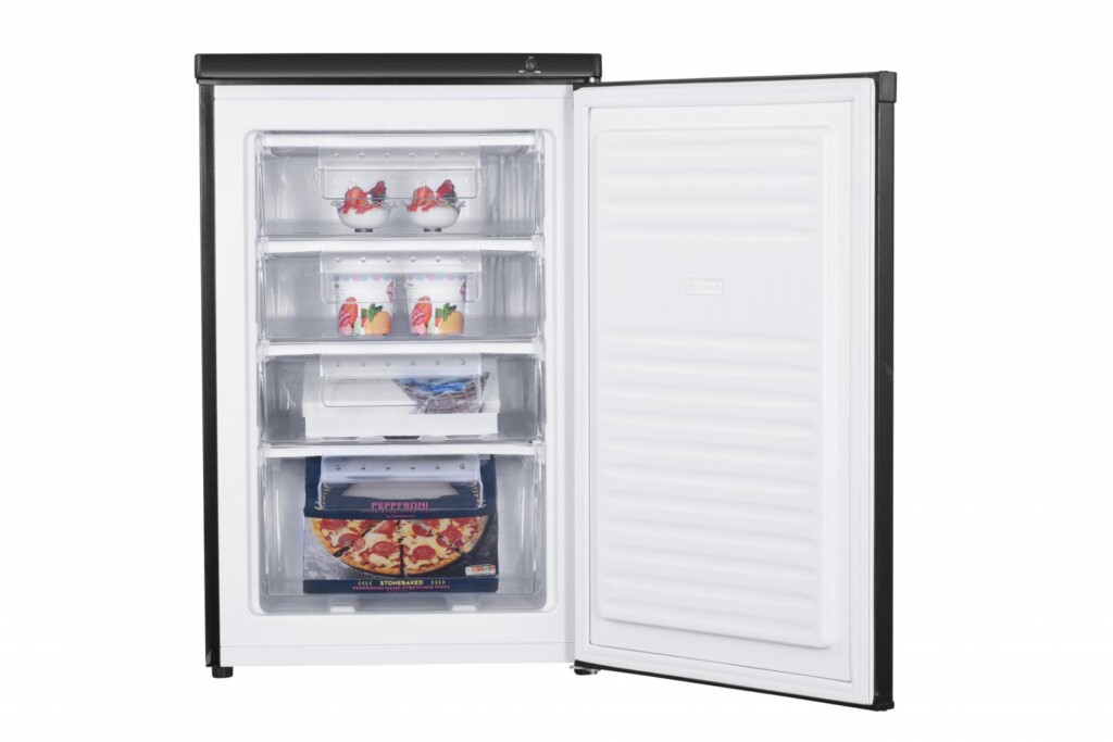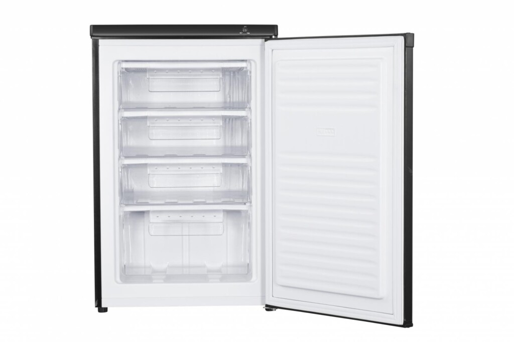 Congelator Heinner HFF-91HBKF+, clasa energetica: F, capacitate totala: 91L, control mecanic cu termostat ajustabil, 4 compartimente congelator, usa reversibila, capacitate congelare: 4.4kg/24h, dimensiuni (WxDxH): 57 x 58 x 85 cm, culoare: Negru.