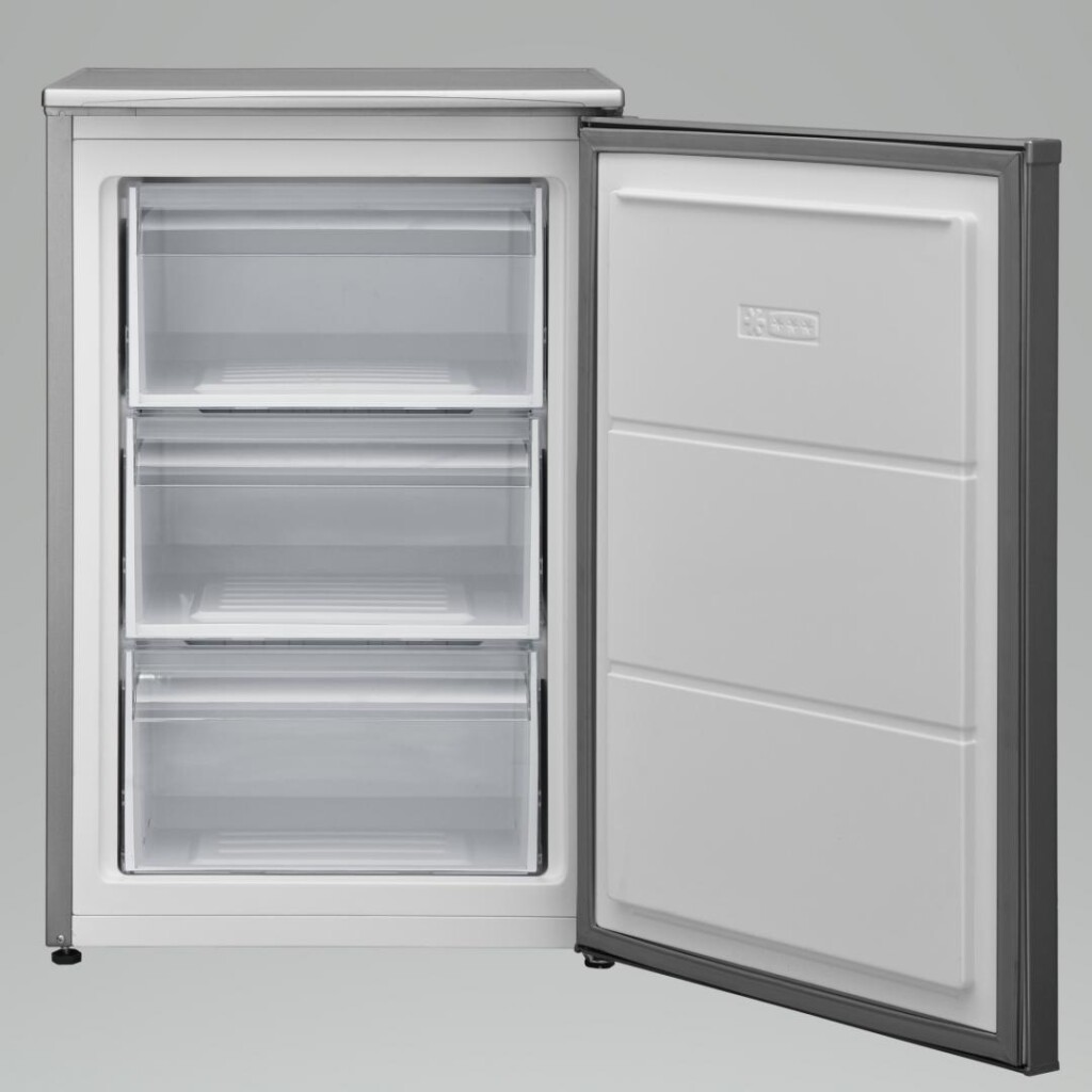 Congelator Heinner HFF-V102SF+, Clasa energetica: F, Capacitate totala: 103L, Control mecanic cu termostat ajustabil, 3 compartimente congelator, Usa reversibila, Capacitate congelare: 5.2kg/ 24h, Nivel de zgomot: 40dB, Dimensiuni (WxDxH): 54 x 61.5 x 83.8 cm, Culoare: Argintiu cu decoratiune cromata pe maner.