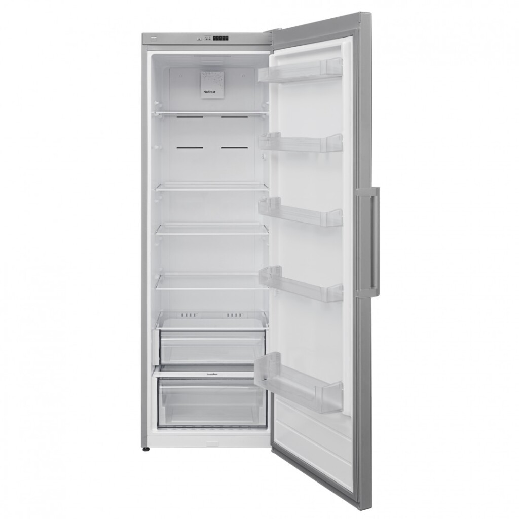 Frigider Heinner HF-V401NFSF+, Full No frost, clasa energetica: F, capacitate neta totala: 389L, control electronic, lumina LED, functie Super racire, 4 rafturi sticla, 1 compartiment pentru fructe si legume cu control nivel umiditate, 1 compartiment Chiller, suport oua, dimensiuni (WxDxH): 59.5 x 65 x 186 cm, culoare: Argintiu.