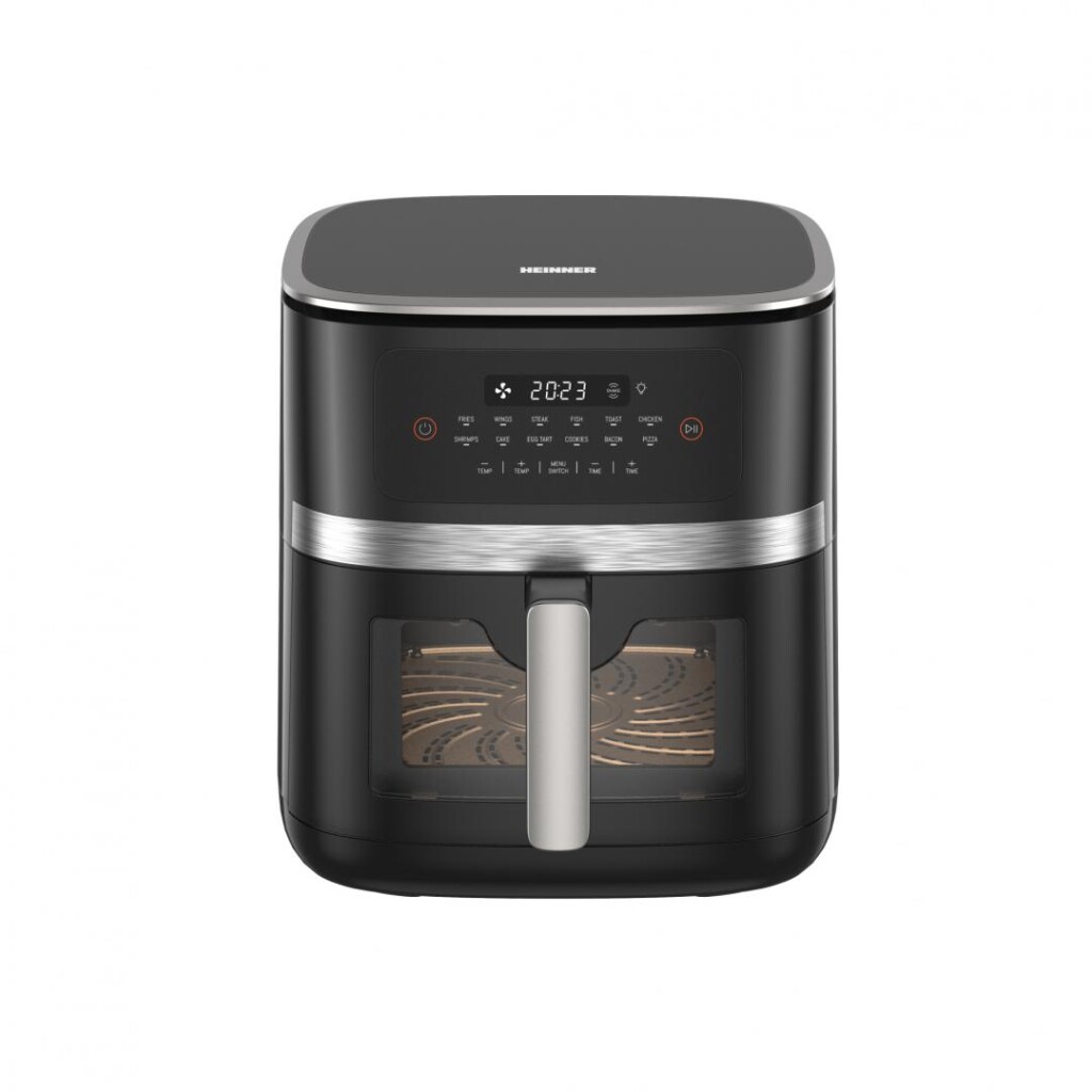 FRITEUZA CU AER CALD HEINNER EffectHeat Fusion HAF-C7DH20BK, 2000W (1500+500W), CAPACITATE: 7L, INCALZIRE DUBLA (SUS-JOS), TEHNOLOGIE CIRCULARE RAPIDA A AERULUI CALD, CAVITATE METALICA, CONTROL DIGITAL, TEMPERATURA 80-200 GRADE C, TIMER 60 MIN, 12 PROGRAME PRESETATE, COS CU INVELIS ANTIADERENT, OPRIRE AUTOMATA, NEGRU.