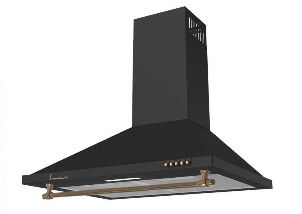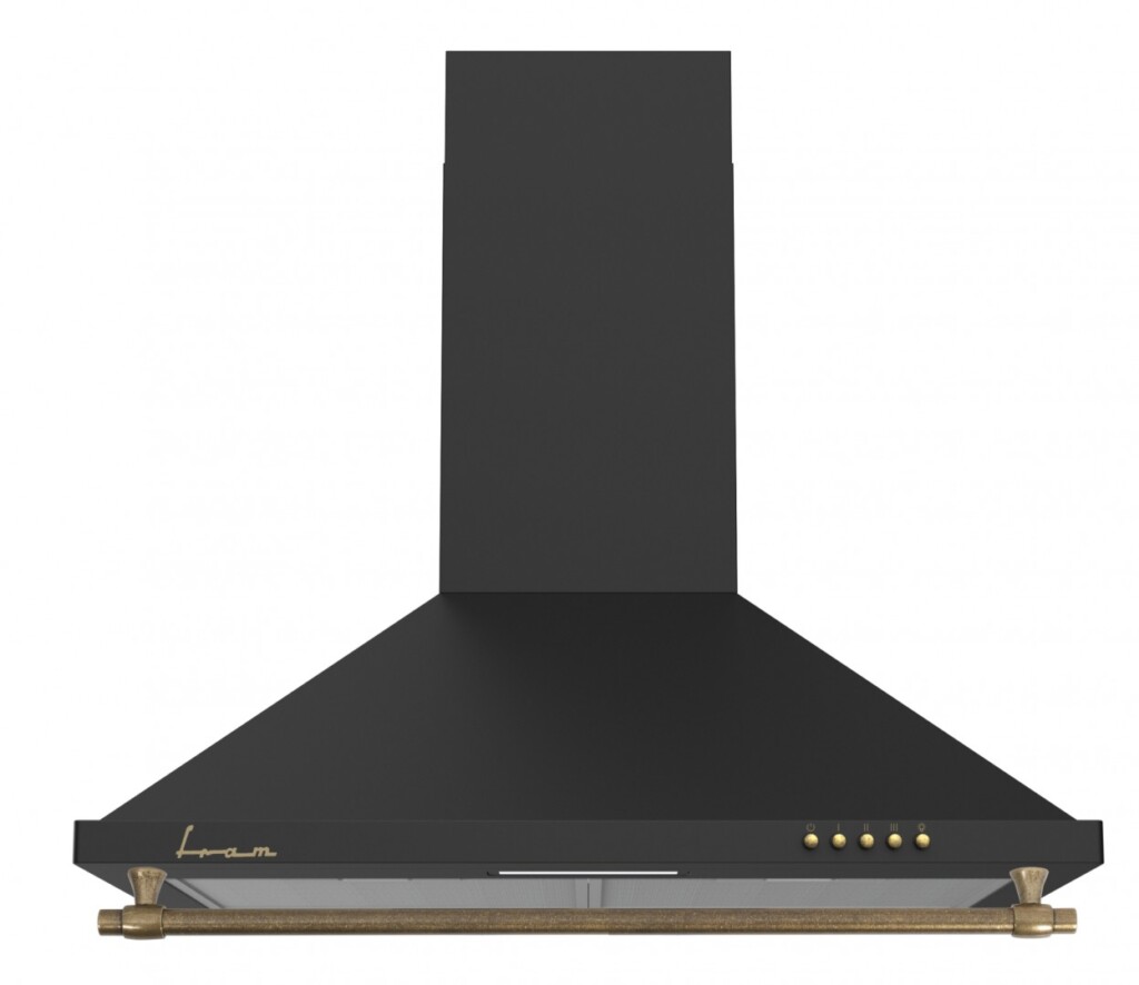 Hota decorativa Fram FCH-S400RBK, 60cm, Design „Piramida”, Putere maxima de absorbtie: 281 m³/h, 3 trepte de viteza, Motor: 1 x 126.5W, Lumina LED: 1 x 1.5W 2 filtre aluminiu, Butoane tip „push”, Diametru tub evacuare: 120mm, Dimensiuni (LxAxI): 59.6x45x (50.5-78.5) cm, Culoare: Rustic Negru.