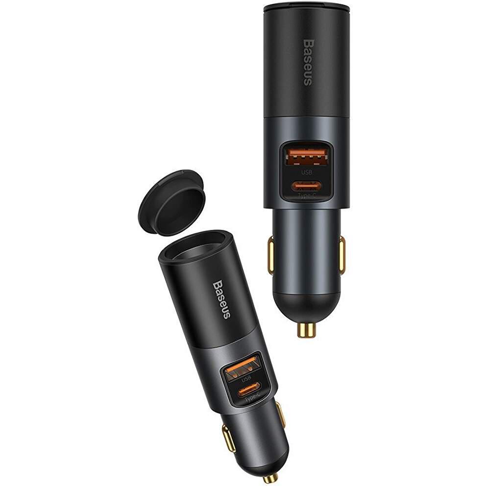 INCARCATOR auto Baseus Share Together, 1 x USB Output 5V/3A, 1 x USB Type-C max 5V/3A si 1 x bricheta auto 60W, total output 120W, pt. bricheta auto, gri.