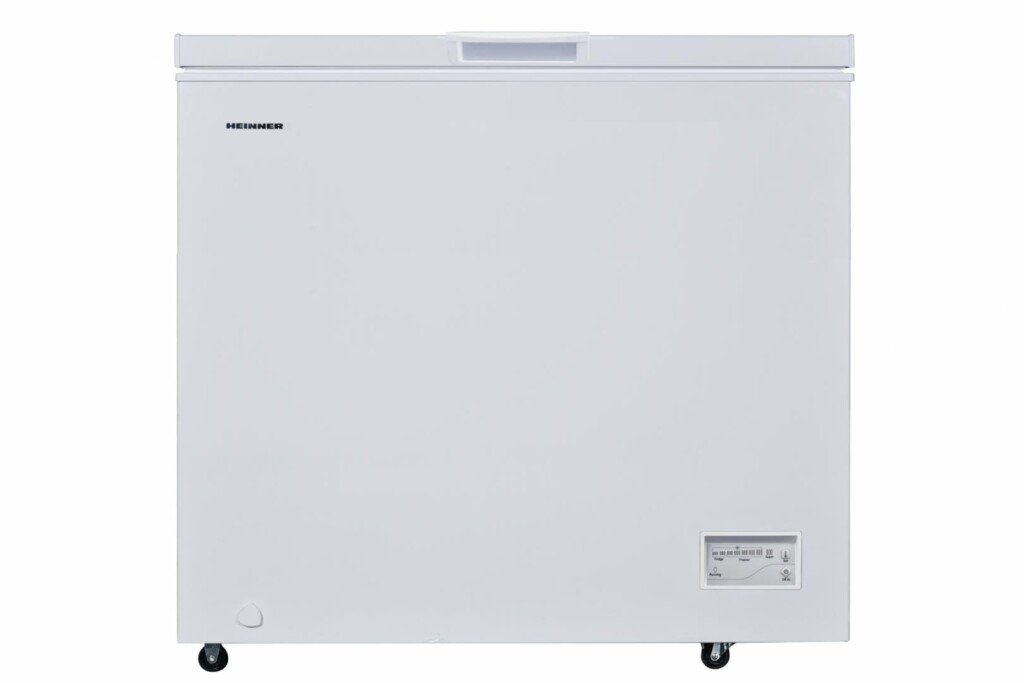 Lada frigorifica Heinner HCF-200CNHF+, convertibila, clasa energetica: F, capacitate totala: 198L, control electronic, rezistenta la frig (opereaza la temperaturi scazute: -15°C), rezistenta la variatii de tensiune 175~255V, display rezistent la apa, functie congelare rapida, 1 cos, decongelare manuala, role pentru transportare usoara, capacitate de congelare: 10kg/24h, dimensiuni (WxDxH): 90.5 x 54.5 x 84.5 cm, culoare: alb.