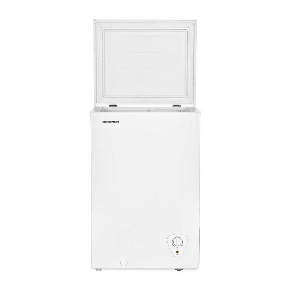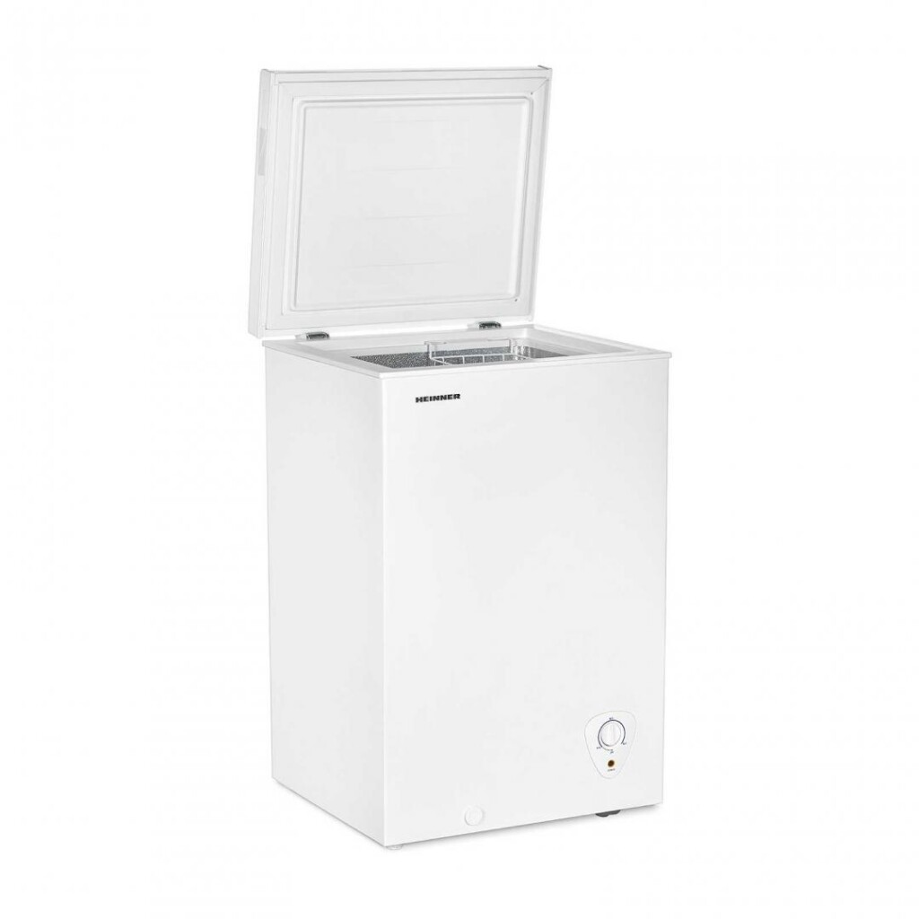 Lada frigorifica Heinner HCF-H98F+, clasa energetica: F, capacitate totala: 95L, control mecanic cu termostat ajustabil, cos din sarma, maner integrat, decongelare manuala, capacitate de congelare: 4.8kg/24h, dimensiuni (WxDxH): 54.6 × 47.9 × 85.4 cm, culoare: alb.