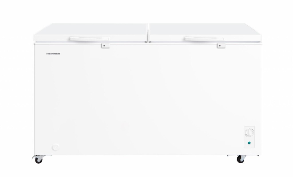Lada frigorifica Heinner HCF-M508INVCE++, clasa energetica: E, compresor Inverter, functionare convertibila (Frigider/Congelator), capacitate totala: 508L, control mecanic, rezistenta la frig, lumina LED, 2 cosuri, maner extern cu incuietoare, decongelare manuala, role pentru transportare usoara, capacitate de congelare: 23kg/24h, dimensiuni (LxAxI): 153 x 73.5 x 86 cm, culoare: Alb.