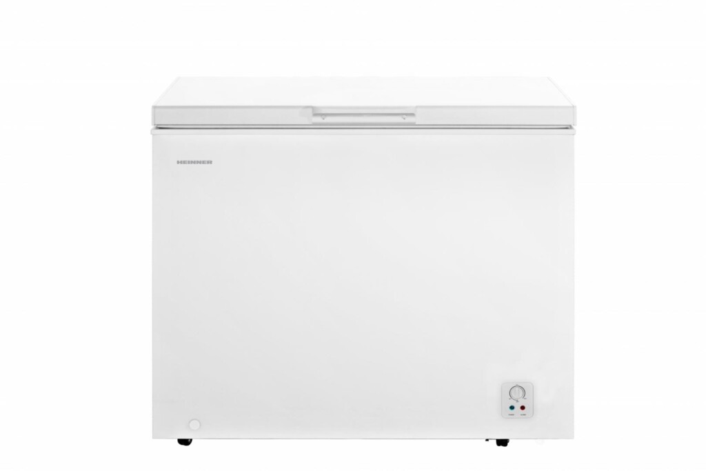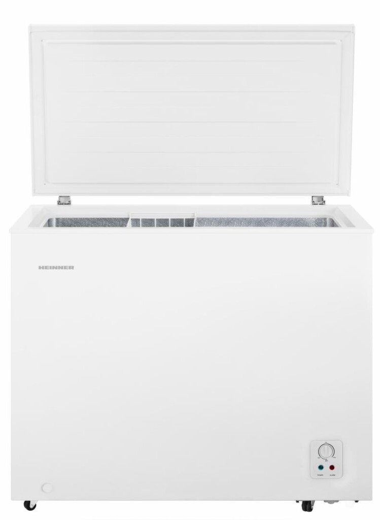 Lada frigorifica Heinner HCF-N250F+, clasa energetica: F, capacitate totala: 245L, control mecanic cu termostat ajustabil, cos din sarma, maner exterior, decongelare manuala, role pentru transportare usoara, capacitate de congelare: 12kg/24h, dimensiuni (WxDxH): 100.2 x 59.7 x 84.2 cm, culoare: alb.