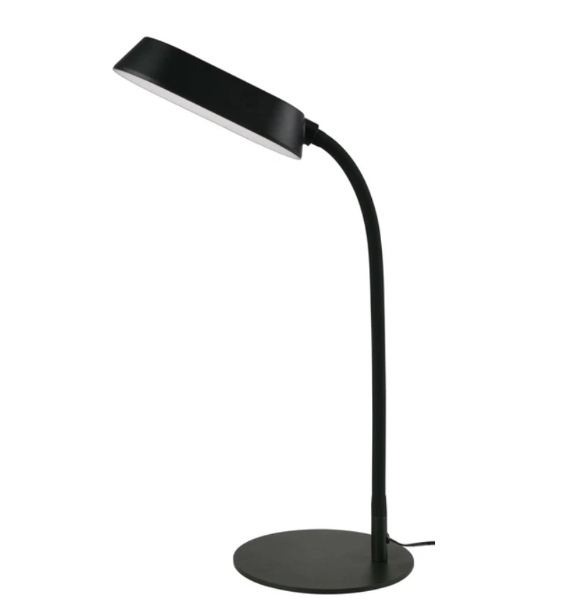 Lampa LED birou OSRAM PANAN DISK METAL, 10W, 750 lm, lumina alba (3000K – 6500K), dimabila, port USB, brat ajustabil, Negru.