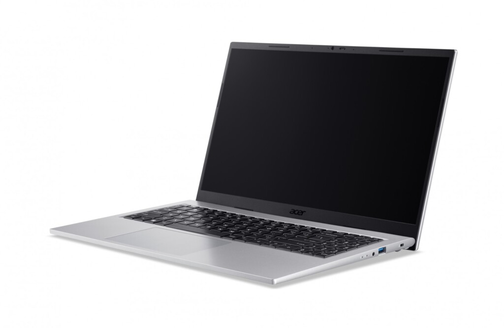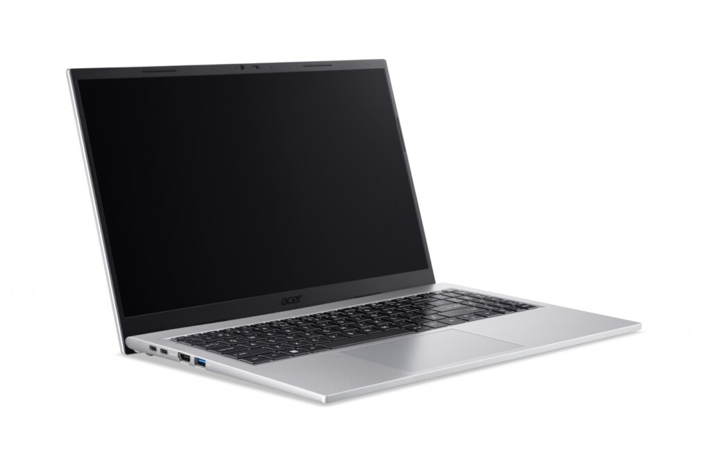 Laptop Acer Aspire Go 15 AG15-72P-30WD, 15.6 inches (39.62 cm), Acer ComfyView™ FHD IPS Display (non-glare), 1920 x 1080, 16:9, Intel® Core™ i3-1305U Processor, Up to 4,50 GHz Turbo-Boost, 10 MB Intel® Smart Cache, 1 Performance-cores + 4 Efficient-cores / 6 Threads, video Intel® UHD Graphics, RAM 16 GB DDR4 RAM (1 x 16 GB DDR4 RAM), Up to 32 GB DDR4 RAM (2x 16 GB soDIMM), SSD 512 GB PCIe Gen4 NVMe Solid-State-Drive (SSD), no ODD, No Card reader, Two built-in stereo speakers, two built-in digital microphones, FHD Webcam, No LAN, WLAN Wi-Fi 6 (802.11 ax) with Intel® Connectivity Performance Suite, Bluetooth® 5.1, No Fingerprint reader, Porturi: 4x (2x Type-A Gen 1, 2x Type-C Gen 2); 1x HDMI® 2.1; Displayport via USB Type-C; No Ethernet (RJ-45); 1x speaker/headphone/line-out (supports headsets with built-in microphone), 65W adapter (50% PCR-plastic), Baterie Li-Ion Battery (53 Wh), TBD, No Backlit keyboard, Pure Silver, Greutate 1.53 kg, Dimensiuni 357.70 x 234.40 x 17.90 mm (W x D x H), No OS (Boot-up only).
