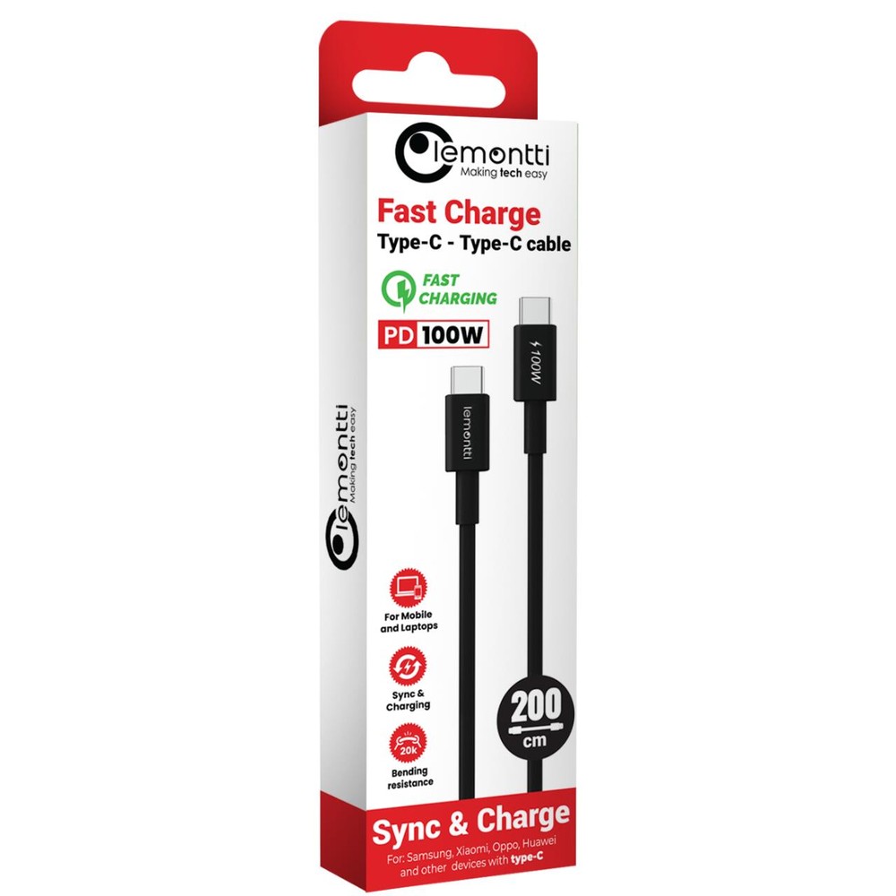Lemontti Cablu Fast Charge Type-C la Type-C, PD, 100W, 2m, Negru