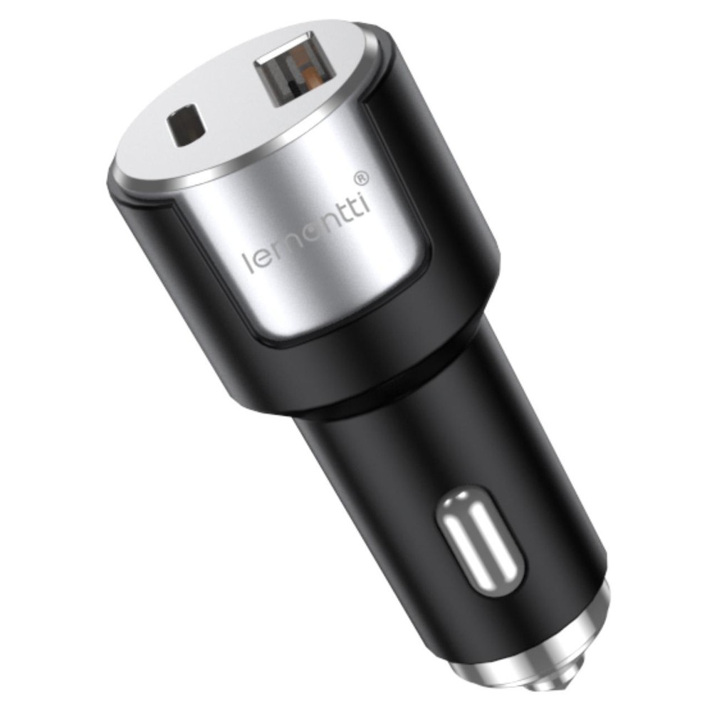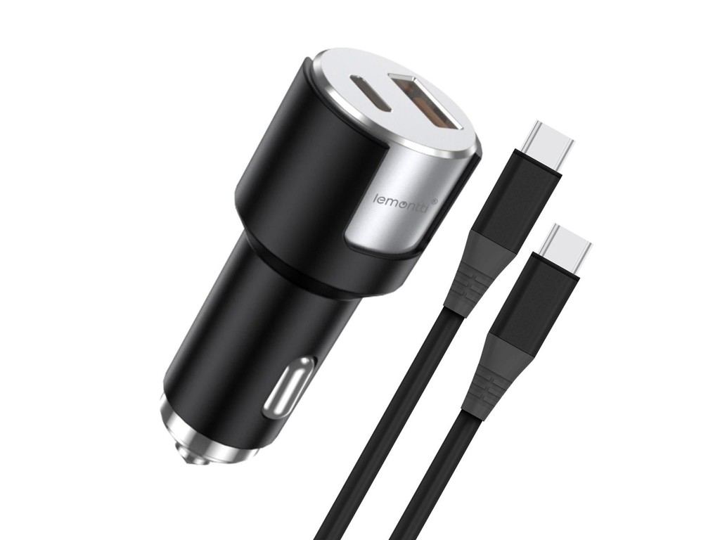 Lemontti Incarcator Auto Fast Charge 1 x port PD Type-C 20W + 1 x port USB-A QC 3.0 18W cu cablu Type-C la Type-C 20W, 1m, Negru/Argintiu