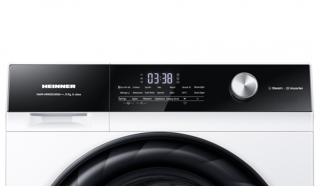 MASINA DE SPALAT RUFE HEINNER HWM-HMK9014IVA+++, CAPACITATE 9KG, VITEZA DE CENTRIFUGARE 1400RPM, CLASA ENERGETICA A, MOTOR INVERTER, 15 PROGRAME, CONTROL TOUCH, DISPLAY DIGITAL, PROGRAM RAPID 15 MIN, PROGRAM ALLERGY STEAM, PROGRAM BABY STEAM CARE, FUNCTIE INTARZIERE FINALIZARE, CLATIRE SUPLIMENTARA, PRESPALARE, FUNCTIE ADAUGARE RUFE, CANTARIRE AUTOMATA, MEMORARE PROGRAM PREFERAT, SELECTOR TEMPERATURA, SELECTOR VITEZA DE CENTRIFUGARE, BLOCARE ACCES COPII, DIMENSIUNI (LXAXI): 59.5X61X84.5 CM, CULOARE: ALB.