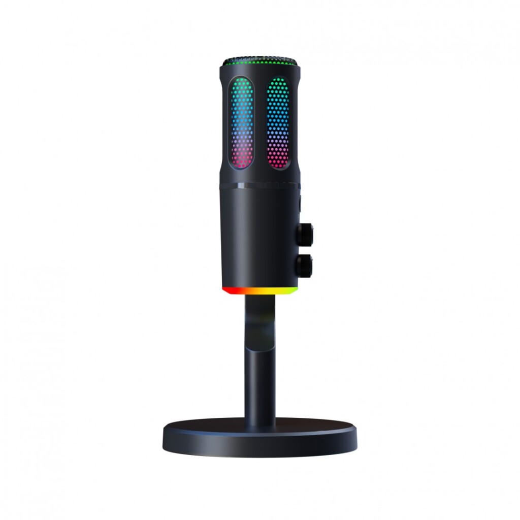 Microfon Gaming de birou Serioux SU8, condenser, unidirectional, frecventa raspuns 20-20KHz, sensibilitate maxima -11DBFS la 80 dB SPL, rata de esantionare 48KHz, rata de biti 16/24bit, raport semnal zgomot 75dB, interfata 3.5mm si USB-C, putere intrare 5V, 200mA, greutate 325g, iluminare RGB, potrivit pentru gaming & streaming, negru.