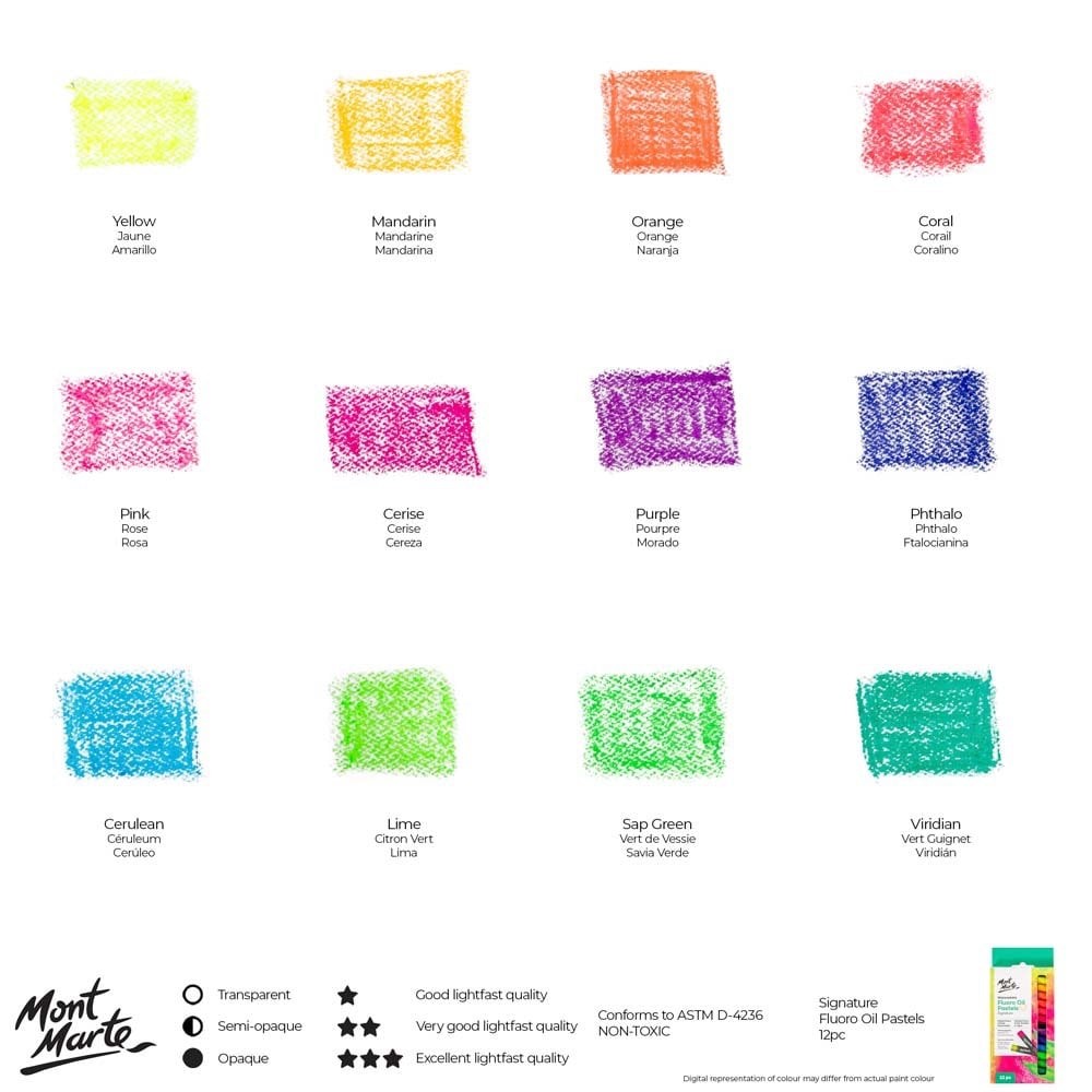 Pastel ulei solubil fluoro Mont Marte 12 buc/set