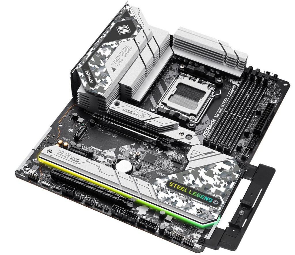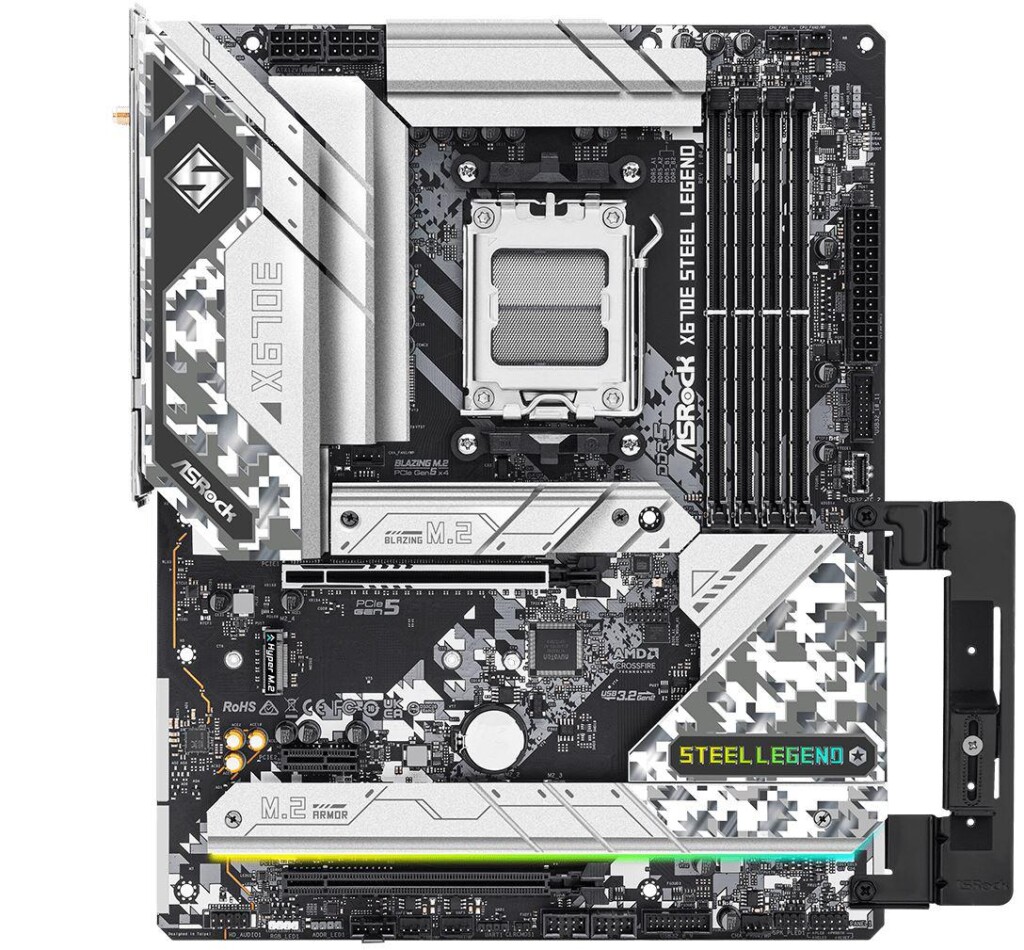 Placa de baza AsRock Socket AM5, X670E Steel Legend Supports AMD Ryzen™ 7000 Series Processors 16+2+1 Phase Power Design, SPS 4 x DDR5 DIMMs, supports up to 6600+(OC) 1 PCIe 5.0 x16, 1 PCIe 3.0 x16, 1 PCIe 3.0 x1 Graphics Output Options: 1 HDMI, 1 DisplayPort 7.1 CH HD Audio with Content Protection (Realtek ALC1220 Audio Codec), Nahimic Audio 1 Blazing M.2 (PCIe Gen5x4), 3 Hyper M.2 (PCIe Gen4x4), 4 SATA3 1 USB 3.2 Gen2 Type-A (Rear), 10 USB 3.2 Gen1 (6 Rear, 4 Front), 8 USB 2.0 (4 Rear, 4 Front) Realtek 2.5G LAN, Realtek 1G LAN 802.11ax Wi-Fi 6E + Bluetooth.