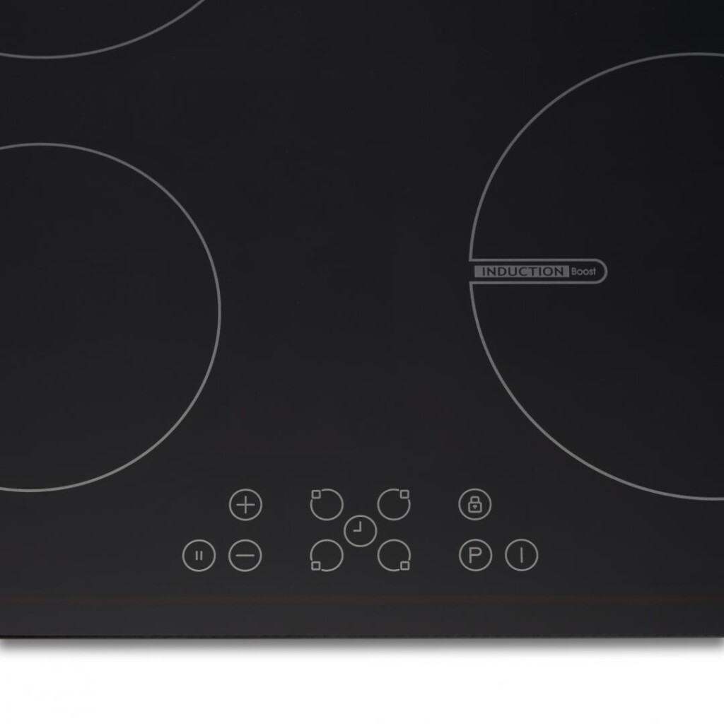 Plita incorporabila Heinner HBHI-V594BTC, Inductie, 4 zone de gatit, Boost 4 zone, Control touch, Timer, Oprire automata, Protectie copii, Detectare automata a vasului de gatit, Indicator de caldura reziduala, Putere: 7400W, Dimensiuni (LxA): 59×52 cm, Culoare: Sticla Neagra.