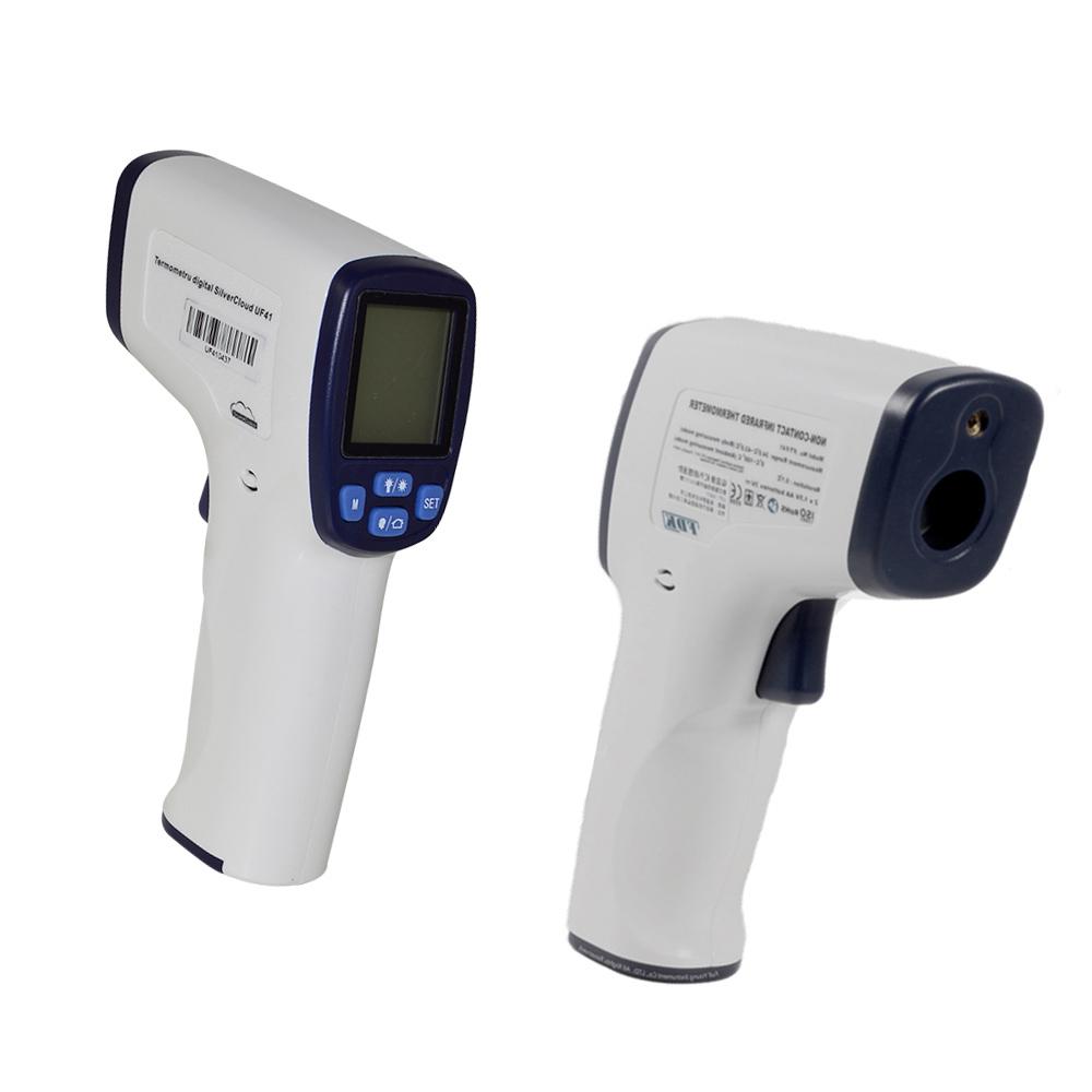 PNI Termometru digital SilverCloud UF41, Infrarosu, Non-Contact, Pentru corp si suprafete, Atentionare vocala, plaja masurare: 32-42.9 grade corp, 0-100 grade suprafete, distanta masurare: 5-10 cm, Dimensiuni: 145 x 37 x 98mm, Greutate: 141g, Alimentare: 2 x baterii AA, neincluse.
