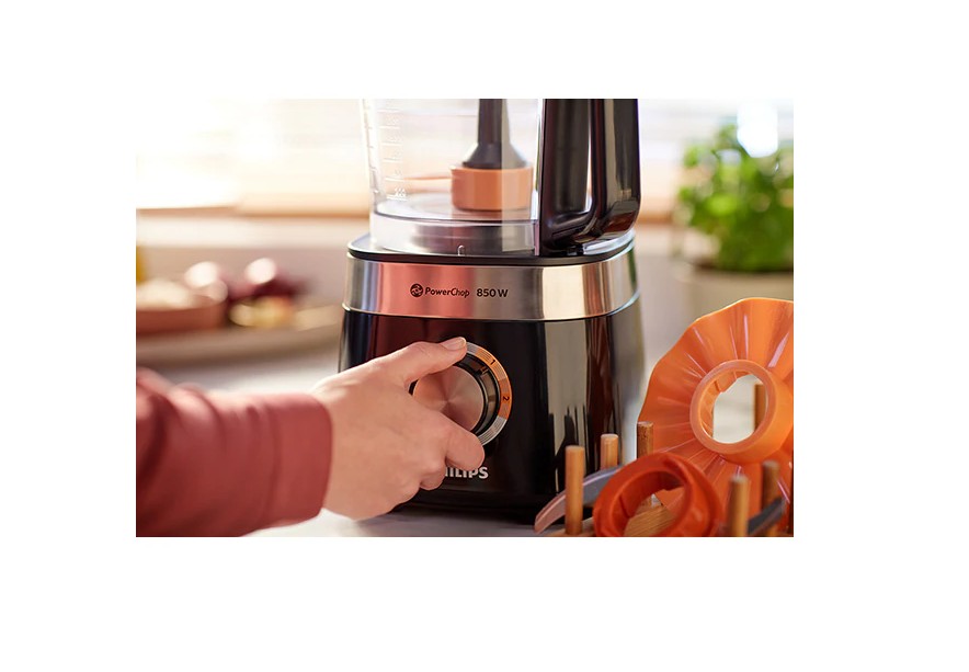 Robot de bucatarie PHILIPS Viva Collection HR7530/10, vas 2.1l, blender 1.5l, 850W, 2 trepte viteza, Negru.