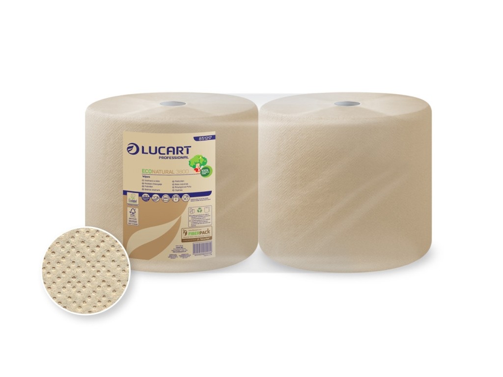 Rolă hârtie industrială Lucart EcoNatural 3800 JOINT este realizată din material eco-friendly Fiberpack, obținut din fibrele de celuloză prezente în cutiile de băuturi Tetra Pak®.