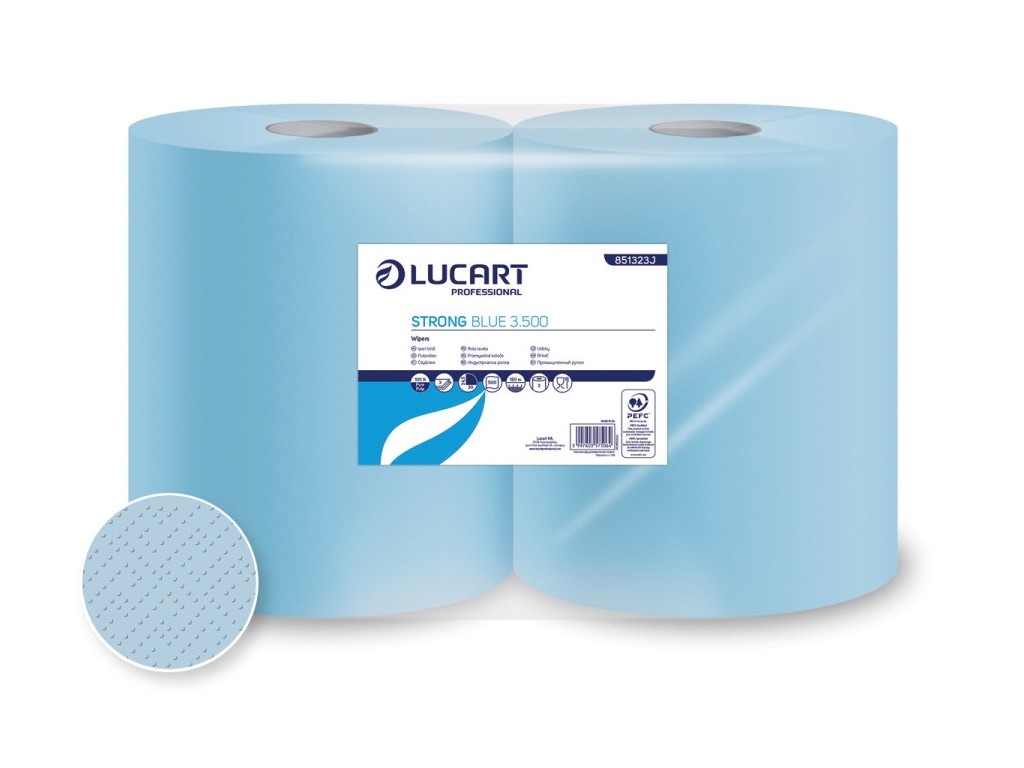 Rolă hârtie industrială Lucart Strong Blue 3.500 este soluția ideală pentru utilizare în industrie, ateliere și unități HoReCa, oferind absorbție excelentă și rezistență ridicată.