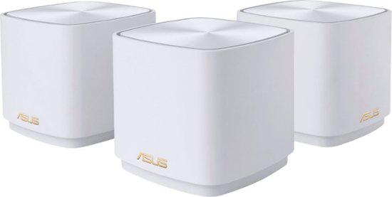 Asus dual-band large home Mesh ZENwifi system, XD4 3 pack; white, 256 MB Flash, 256 MB RAM; Network Standard IEEE 802.11a, IEEE 802.11b, IEEE 802.11g, IEEE 802.11n, IEEE 802.11ac, IEEE 802.11ax, IPv4, IPv6, Internal dual-band antenna x 2, MIMO technology 2.4 GHz 2 x 2, 5 GHz 2 x 2, RJ45 for 1000 BaseT for WAN/LAN x 1, RJ45 for 1000 BaseT for LAN x 1.