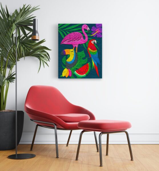 - 1 pânză pre-înrămată (gata de agățat)