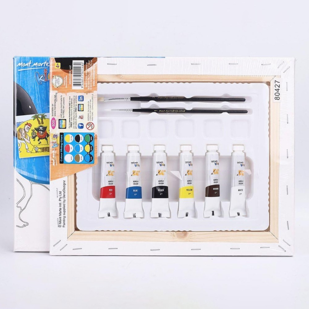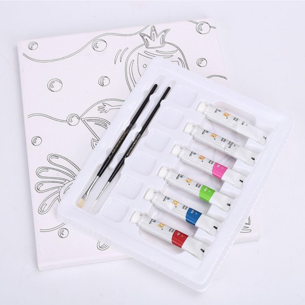 – 6 tuburi de vopsea acrilică de 12 ml fiecare.