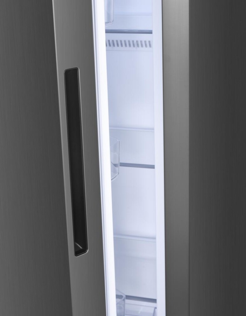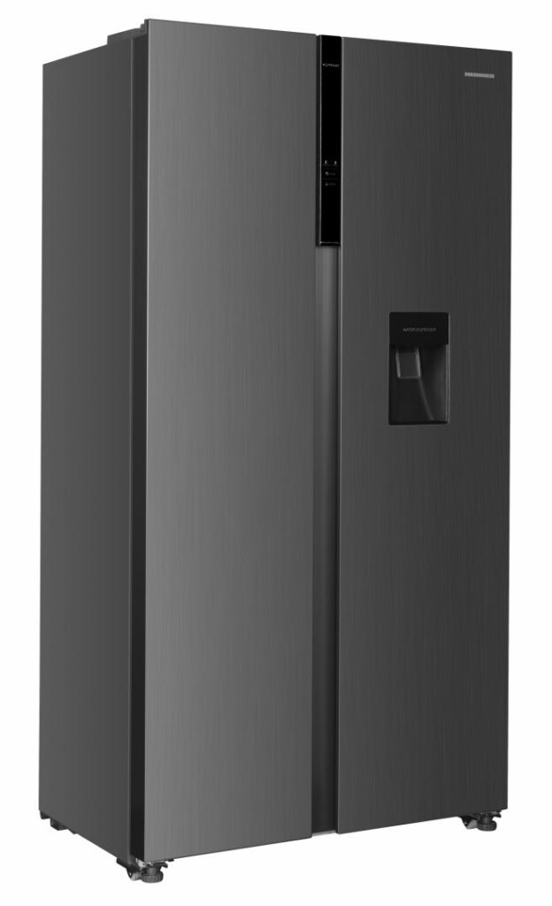 Side by side Heinner HSBS-HM439NFINVXWDD, Full No Frost, compresor Inverter, dozator de apa, clasa energetica D, display LED cu control touch, capacitate totala: 439L, capacitate frigider: 288L, capacitate congelator: 151L, lumina LED, functie SMART, functie ECO, functie Super racire, functie Super congelare, alarma usa deschisa, blocare acces copii, 3 rafturi din sticla frigider, 2 compartimente pentru fructe si legume, 3 rafturi congelator, 2 sertare congelator, dimensiuni (LxAxI): 91 x 59 x 177 cm, culoare: Aspect inox.