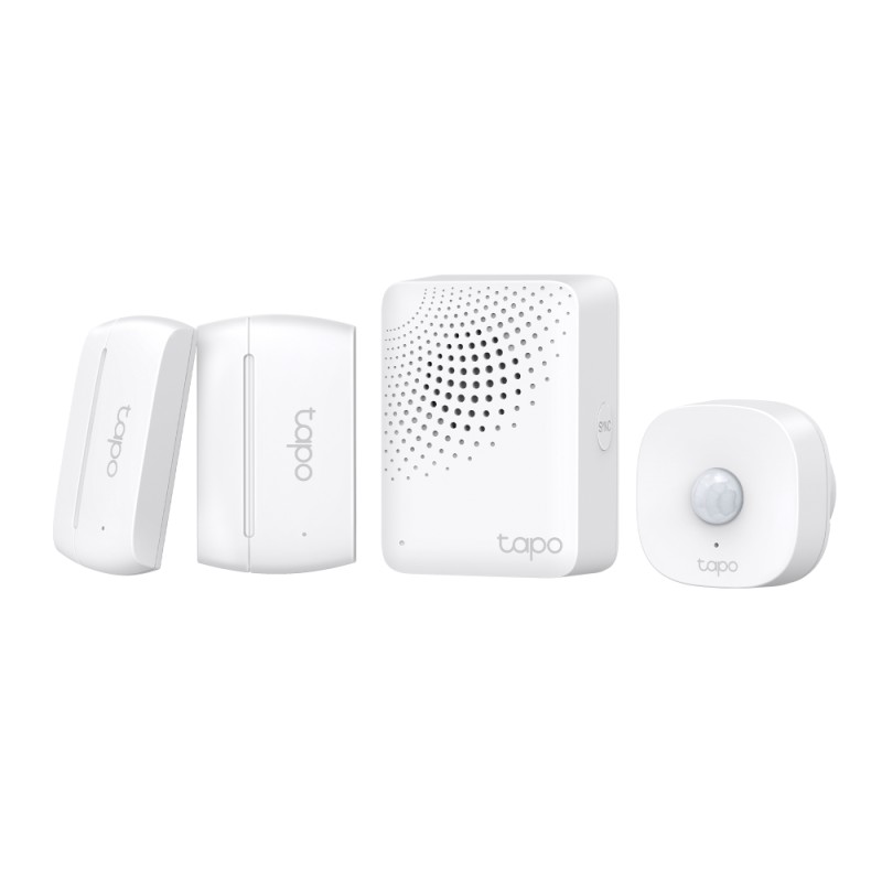 Smart IoT Hub with Chime SPEC: 2.4 GHz, 868 MHz, 100-240 V~, 50/60 Hz, Plug-in FEATURE: 90dB Adjustable Audio Alarm, 19 Ringtones, Up to 65 Switches, Sensors or Buttons, Mute Button, Easy Setup, Device Sharing, Flame- Retardant, Tapo App.