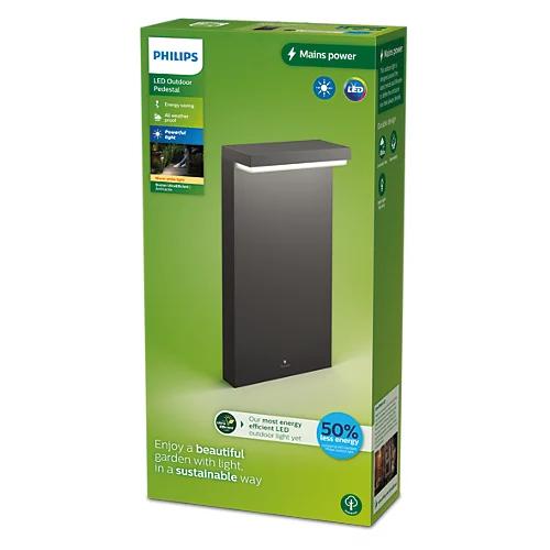 Stalp LED pentru exterior Philips BUSTAN, 3.8W, 800 lm, lumina calda (2700K), IP44, 400x220x90mm, Antracit.