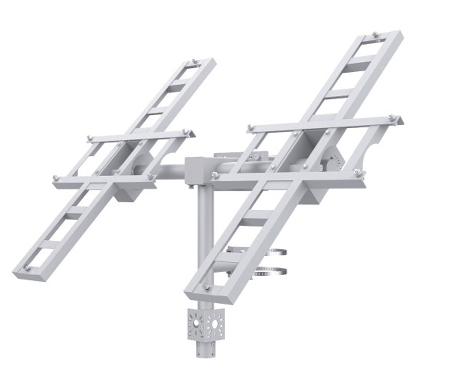 Suport dublu pentru panouri solare 2x VIGI 90W, din otel galvanizat, unghi de reglare manual: 5°~55°, stalp compatibil: Ø80-160 mm, greutate: 20kg.