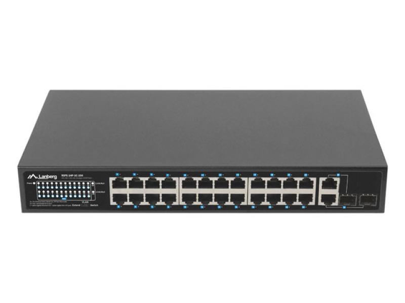 Switch 24x 100 Mb PoE+ / 2x combo, rack 19″, Gigabit Ethernet, 250W.