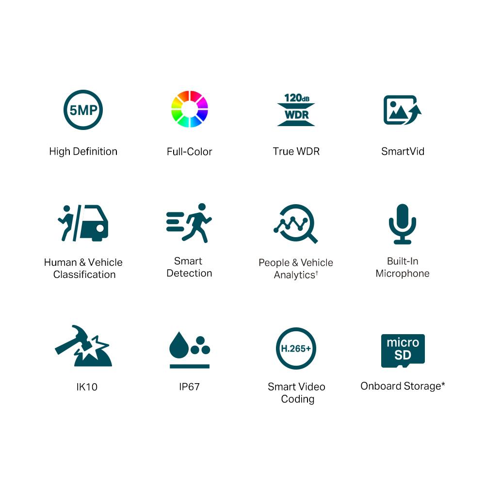 TP-Link Camera IR de supraveghere Dome pentru exterior VIGI C250 (4MM), Senzor imagine: CMOS 1/2.7″, Lentila 4mm, F1.6, Weatherproof: IP67, IK10, Infrarosu: 30m, Unghi vizualizare: Horizontal FOV: 90°, Vertical FOV: 48°, Diagonal FOV: 107°, Detectare: 80m, Observare: 33m, Recunoastere: 16m, Identificare: 8m, Rezolutie maxima: 5 MPX, 2880 X 1620, Dimensiuni: Φ115×85.7 mm, Interfata: 1 RJ45 10/100M Self-Adaptive Ethernet Port, PoE. Card SLot-MicroSD, Max 256GB, Microfon incorporat.