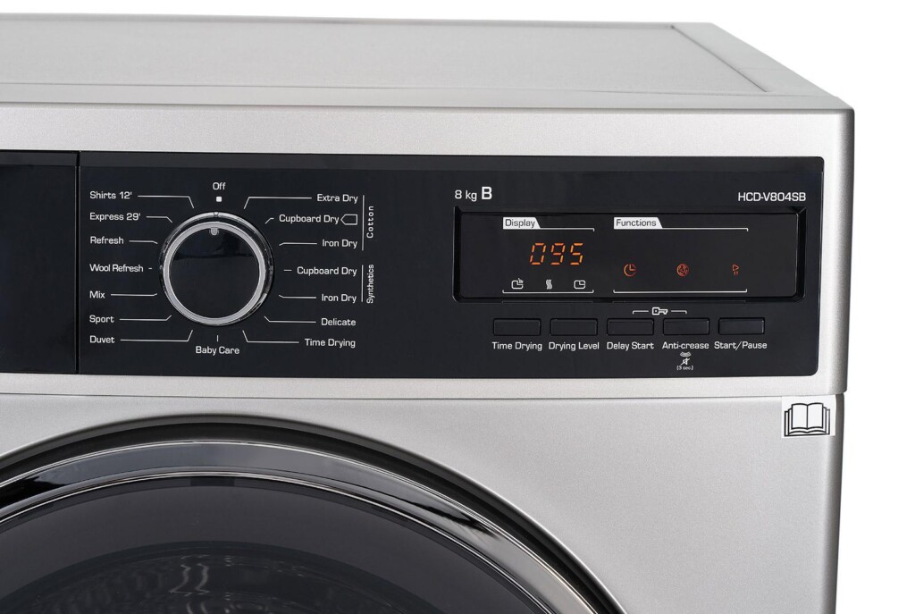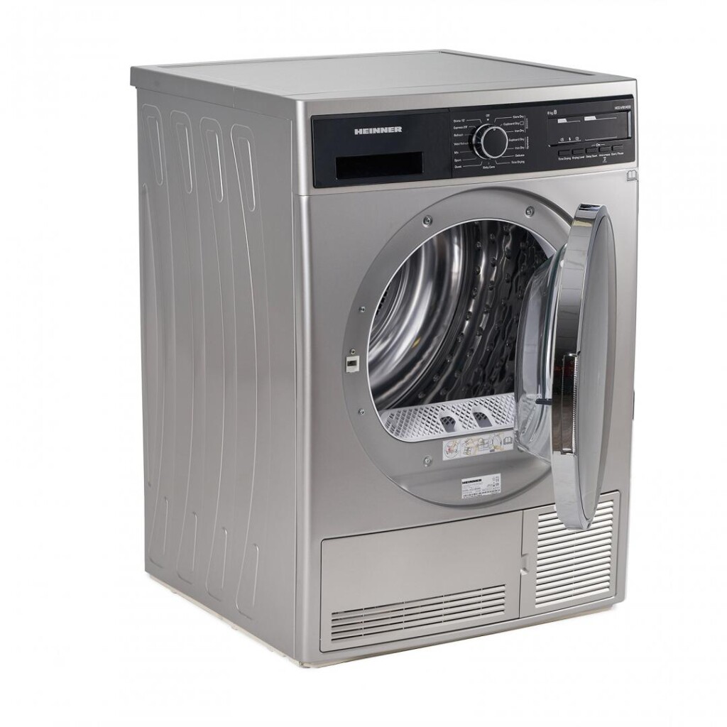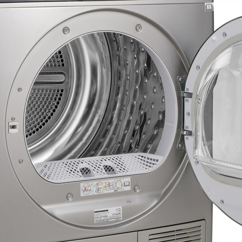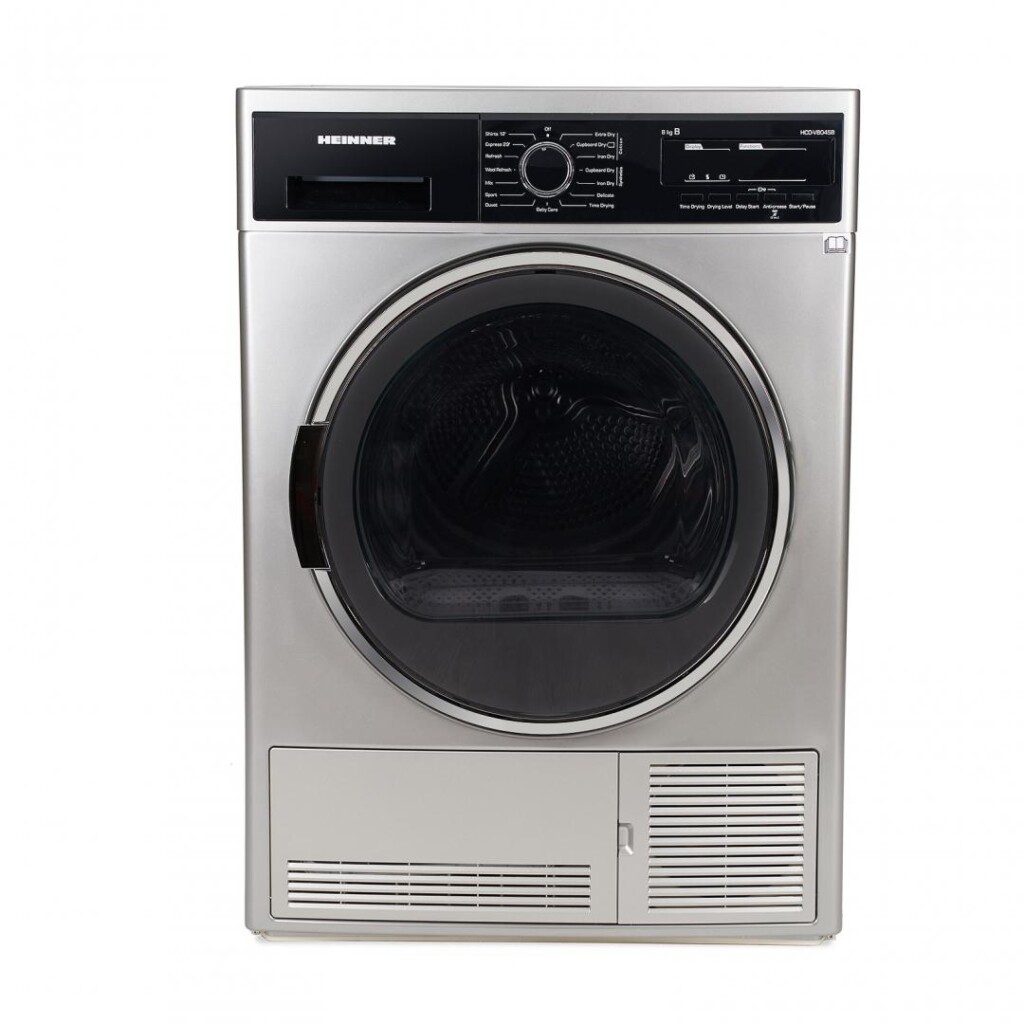 Uscator de rufe cu condensare Heinner HCD-V804SB, Capacitate incarcare 8kg, Clasa energetica B, 15 programe de uscare, Design elegant cu panel negru si usa cromata, Display LED, Program rapid camasi 12 min, Program expres 29 min, Program Baby Care, Functie Start intarziat, Functie anti-sifonare, Lumina cuva, Selector nivel uscare, Indicator curatare filtru scame, Indicator rezervor colectare apa plin, Blocare acces copii, Dimensiuni (LxAxI): 60.9×56.3×84.5 cm, Culoare: Argintiu.